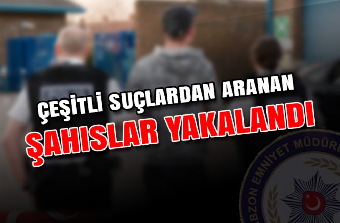 Trabzon Emniyet Müdürlüğünden konuyla ilgili yapılan açıklamada; “7 Kasım 2022 günü Yomra ve Köprübaşı İlçe Siber Suçlarla Mücadele Şube Müdürlüklerince yapılan çalışmalarda, haklarında arama kaydı bulunan E.C. ‘hakaret’, D.A. ‘taksirle birden fazla kişinin yaralanmasına neden olma’, H.T. ‘bilişim sistemleri banka ve kredi kurumlarının araç olarak kullanılması suretiyle dolandırıcılık’ suçlarından yakalanmıştır” denildi.