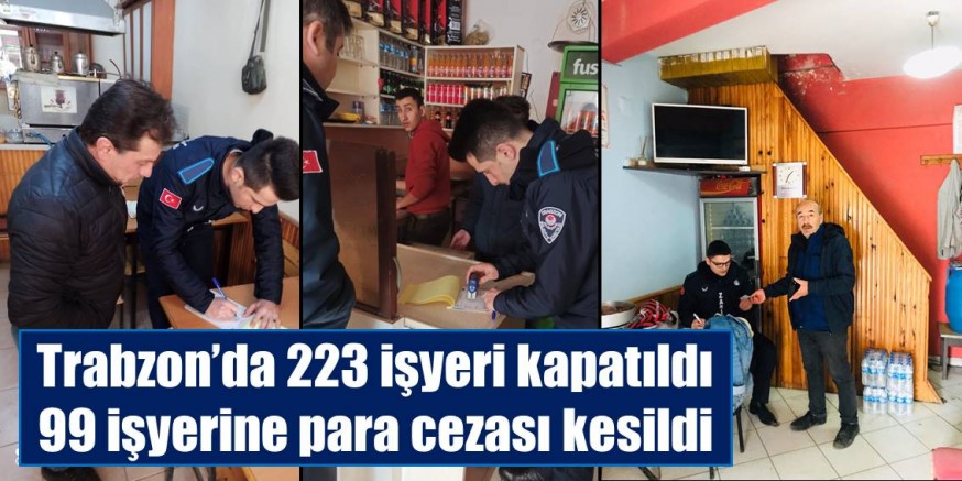 Trabzon il genelinde yapılan denetimlerde tedbir kararına uymayan 223 iş yeri tekrar kapatıldı, bunlardan 99’una ise idari işlem yapılarak para cezası uygulandı.
