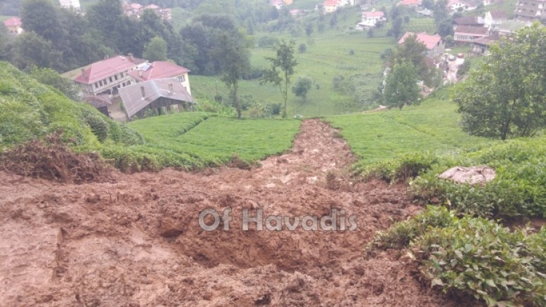 Doğu Karadeniz Bölgesini etkisi altına alan sağanak yağış Of’un Bölümlü Mahallesi’nde de heyelana neden oldu.