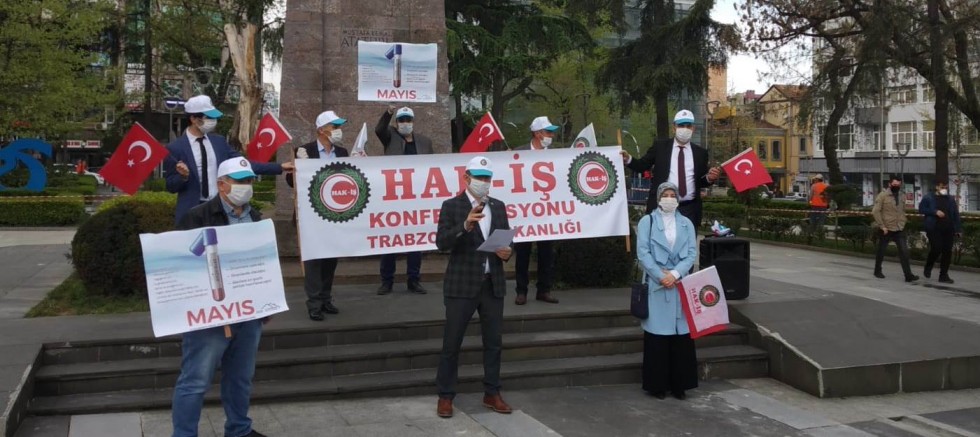 1 Mayıs Emek ve Dayanışma Günü dolayısıyla basın açıklaması yapan HAK-İŞ Trabzon İl Başkanı İsmail Hakkı Kaplan, taleplerini sıralayarak “Kısa Çalışma ödeneğinden yararlanma koşullarının daha da esnetilmesini istiyoruz.” dedi.