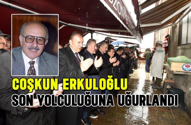 Coşkun Erkuloğlu için İskenderpaşa Camisi’nde öğle namazının ardından kılınan cenaze namazına CHP Trabzon Milletvekili Ahmet Kaya, KTÜ Rektörü Prof. Dr. Hamdullah Çuvalcı, Ortahisar Belediye Başkanı Ahmet Metin Genç, AK Parti İl Başkanı Sezgin Mumcu, TTSO Meclis Başkanı M. Şadan Eren, Erkuloğlu’nun damadı TTSO Başkanı Erkut Çelebi, TTSO eski yönetim kurulu başkanları, eski ve yeni yönetim kurulu ve meclis üyeleri, iş dünyası temsilcileri ile vatandaşlar katıldı. Coşkun Erkuloğlu’nun cenazesi namazın ardından Sülüklü Mezarlığındaki aile kabristanlığında toprağa verildi.
